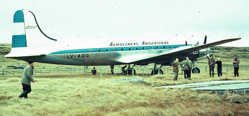 On Wednesday, 28 September 1966 an armed group hijacked flight 648 of Aerolíneas Argentinas on its regular run from Buenos Aires to Río Gallegos and Ushuaia, and forced the pilot Ernesto Fernández García to fly off-course to the Falkland Islands. At 8.42am, the Douglas DC4, LV-AGG, landed on Stanley racecourse. The hijackers landed from the aircraft and hoisted seven Argentine flags, trying at the same time to keep the Islanders, who thought this was an emergency landing, away. The group delivered a formal statement in English (although addressed chiefly to the Argentine public) to reaffirm Argentine sovereignty over the Islands. They invited the Islanders to adopt Argentine citizenship, and renamed the Islands - Malvinas and Port Stanley - Puerto Rivero. They went on to seize seven hostages. At this, the Islands' authorities blocked in the aircraft using Landrovers.
