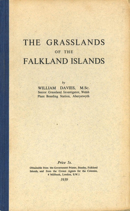 Davies wrote the majority of his Report before he left the Falkland Islands, but the printed version The Grasslands of the Falkland Islands (HMSO 1939) did not reach the Islands until mid-1939. The Report was distributed to all sheep farmers and managers, but the Governor lamented that 'it received no acknowledgement from any of the large [land] holders'.