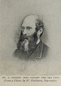 Thomas Havers married Ellen, daughter of the Rev Rogers Ruding, a numismatist, at the parish church of St Marylebone, London on 1 February 1844. He worked for the London firm of Ricketts, Boutcher & Co and was 'confidential clerk' to William Boutcher, one of the first directors of the Falkland Islands Company. By 1851, Havers was acting secretary of the FIC and three years later was appointed colonial manager. Havers embarked for the Falklands but was shipwrecked off the Welsh coast and had to set off once more, this time by Royal Mail steamer from Southampton. (The FIC board in February 1854 contributed £5 to replace the clothing of his governess and his servant lost in the wreck). The cost of the voyage for the Havers family was put at £200 for he travelled with his wife and four children as well as two servants. On his way to the Falklands, Havers stayed with SF LAFONE at Montevideo and visited saladeros (slaughter and salting yards). His misgivings were expressed to the board:
