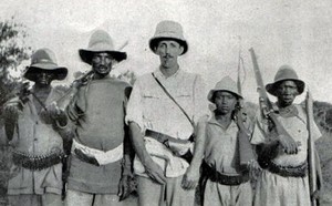 One of Hodson's later missions was to the Damaraland frontier during the time of the Herero and Nama Wars in German South-West Africa {Namibia}. He was much involved in trying to reconcile conflicts between tribal chiefs and his several political missions covered an important part of the history of Bechuanaland. During this period he travelled extensively and published Trekking the Great Thirst: Travel and Sport in the Kalahari Desert.