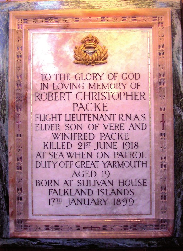 Packe was probably the first Falkland Islander to fly: a plaque in Stanley Cathedral commemorates his brief life.