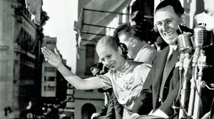 After returning to Argentina, he was one of the officers who seized power in the 1943 military coup. But, unlike the vast majority of the military then, Perón associated himself with Argentina's workers and urban proletariat - the poor European immigrants, who were so despised by Argentina's upper classes. He came to dominate the increasingly powerful Labour Secretariat in that Junta. In 1944, Perón met the beautiful and flamboyant actress and broadcaster María Eva Duarte, 24 years his junior. She became his mistress, and is better known as Evita.