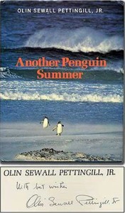 They returned to the Falklands from November 1971 to March 1972, partly under the auspices of the National Geographic Society and made three further short visits. Pettingill published scientific papers on the effects of weather and climate on our breeding birds (1960), passerines (1974), Gentoo, Rockhopper and Magellanic Penguins (1960 & 1964) and Kelp Geese and Steamer Ducks (1965). Another Penguin Summer containing many delightful photographs and describing the behaviour and the breeding cycles of the five resident penguins was published in 1975.