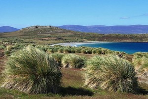 In 1850 HMS Rattlesnake, Lieutenant Charles Yule, returning to England from a surveying voyage to the east coast of Australia, called at Stanley. (Thomas Henry Huxley, assistant surgeon on board the Rattlesnake described Mrs Sulivan's house as black and unpromising.) After leaving Stanley, Yule took the Rattlesnake to Berkeley Sound, where her naturalist, John Macgillivray, accompanied Sulivan in order to watch his gauchos, one of whom was named Andrez Pelaluya (presumably PITALUGA), catch some cattle required for the ship with lasso and bolas *. The two landed on Hog Island, where Sulivan's herd of eleven hundred cattle and some horses had been kept during the winter to feed on the tussock grass fringing the shore. Sulivan's establishment was on the mainland opposite, reached by a ford at low water. When his three years's leave was about up, Sulivan returned to England in the autumn of 1851. Sulivan considered tussock grass (Poa flabellata) to be of the greatest value and introduced it to a Scottish landowner who planted it in Stornoway, where it answered all expectations. Unfortunately it did not survive owing to the neglect of the injunction 'not to let the cattle feed on the plant', but to cut it for them.